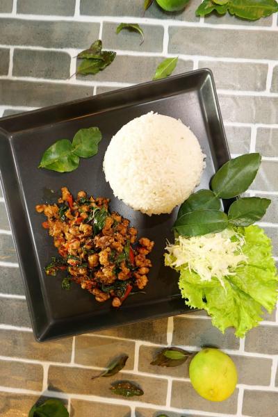 ผัดกระเพรา ไก่ หมู เนื้อ กุ้ง ปลาหมึก ทะเล