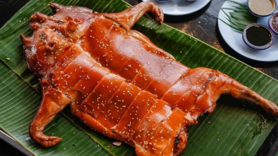 กุ้งลายเสือน้ำพริกซัมบัลย่างใบตอง