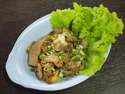 หมูชิ้นผัดกระเทียมพริกไทย ราดข้า...