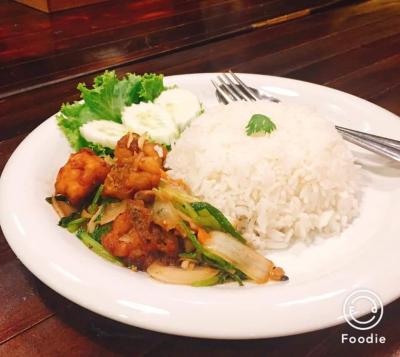 หมูชิ้นผัดน้ำมันหอย ราดข้าว ธรรม...