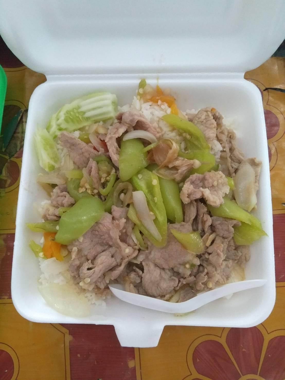 ผัดพริกอ่อน หมูชิ้น ราดข้าว ธรรมดา 50 พิเศษ 60 กับข้าว 60
