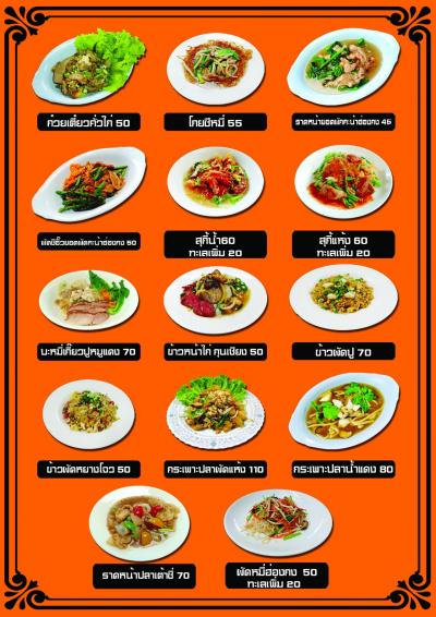 ก๋วยเตี๋ยวต้มยำน้ำข้น ก๋วยเตี๋ยวเย็นตาโฟรสเด็ด ข้าวยำไก่แซบ ข้าวหมู 3 ชั้นทอด |