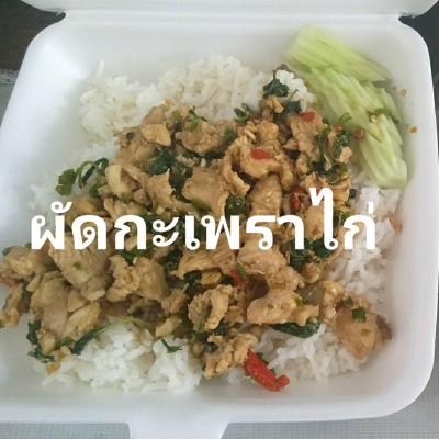 ผัดกระเพราเครื่องในไก่ ราดข้าว ธ...