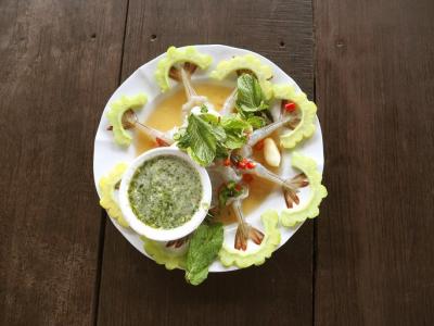 กุ้งลายเสือน้ำพริกซัมบัลย่างใบตอ...