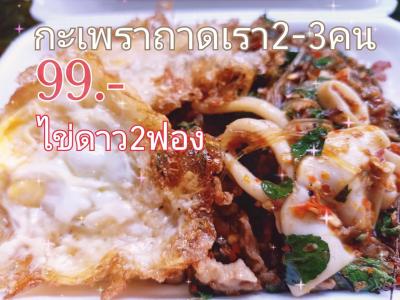 ผัดกระเพราหมูสับ + ไก่ (สองอย่าง...