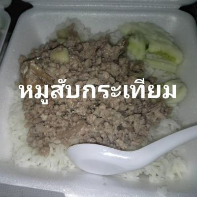 หมูสับผัดกระเทียมพริกไทย ราดข้าว...