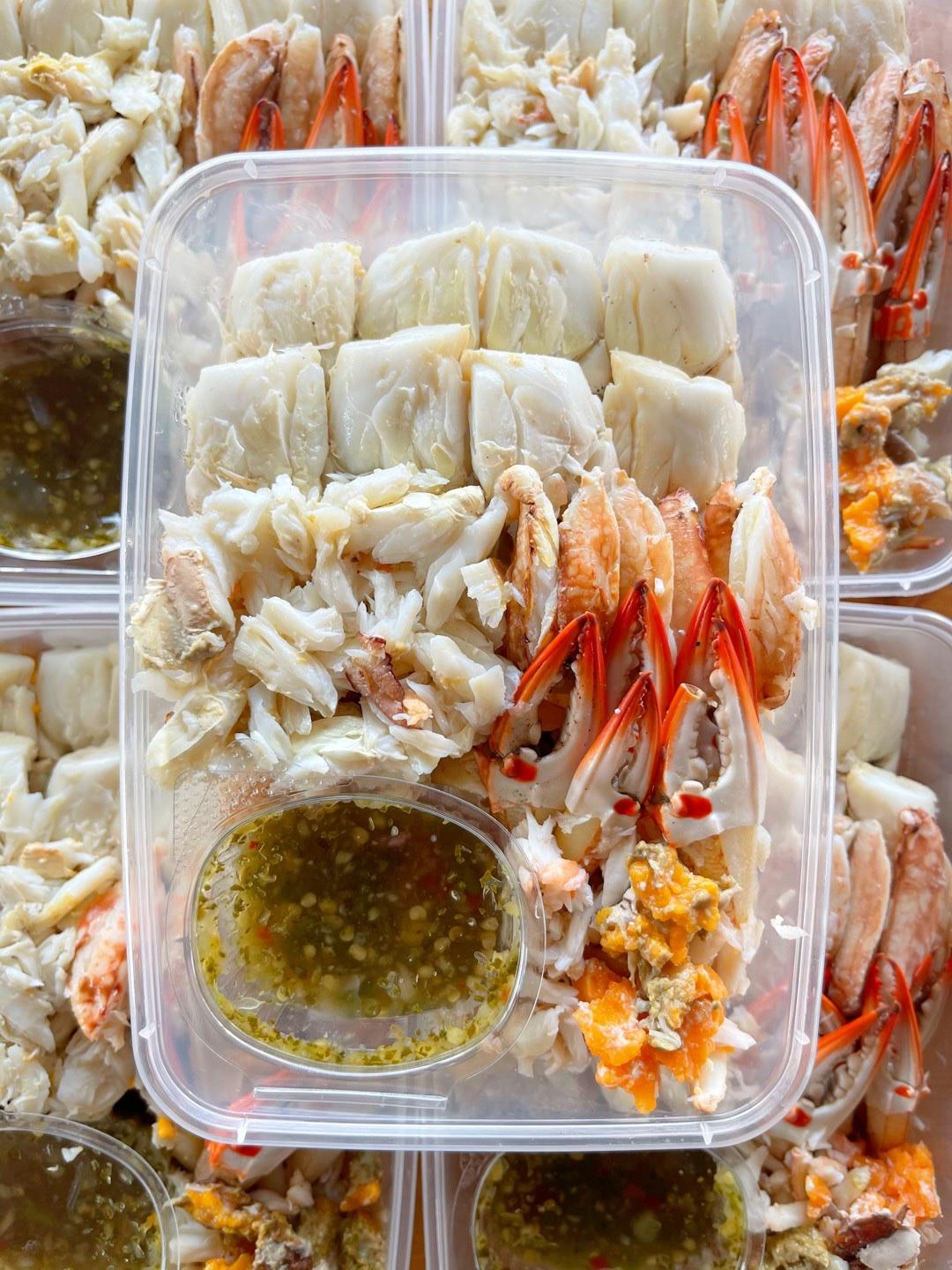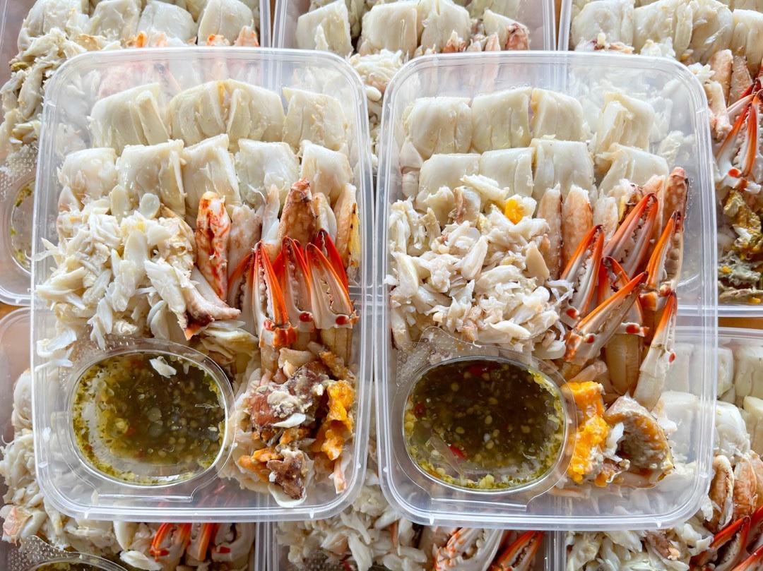 อาหารทะเลสด ปูม้าเป็น ปูม้าแกะพร้อมทาน มันปูม้าปนไข่ ปูม้าดองน้ำปลากวน ไข่ปูม้า หมึกไข่แดดเดียว ฮ่อยจ๊อเนื้อปู ปูจ๋า กุ้งแม่น้ำ
