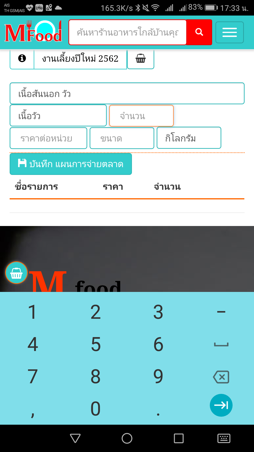 จากนั้นเราค่อยใส่จำนวนที่ต้องการ และราคาที่คิดว่าจะได้ตามต้องการเข้าไป (อนาคตเมื่อระบบของ M Food มีคนใช้งานเยอะเราจะอิงราคาจากผู้จำหน่ายวัตถุดิบที่มาใช้งานระบบของ M Food ให้เลย ยังไงขอให้อดทนรอกันต่อไป)