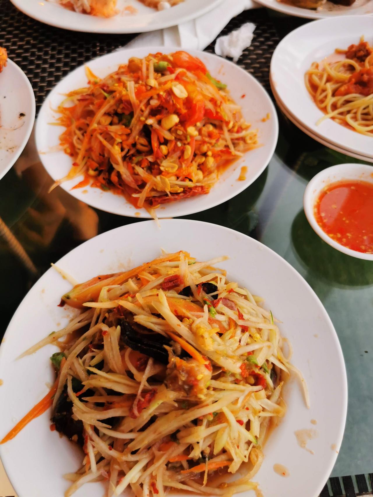 ถามว่าส้มตำอร่อยไหม ขอบอกเลยว่ากินไม่หมดครับ เส้นมะละกอเหมือนมันจะออกเหนียว ๆ ไม่กรอบ