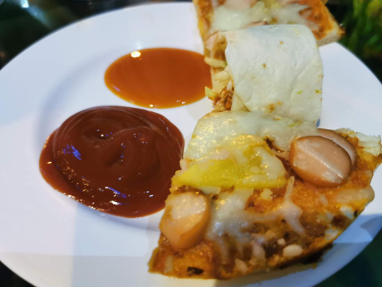 ส่วนภาพถัดไปนี้เป็นเมนูที่ผมขอแนะนำเลยครับ เป็นพิซซ่าพัฟ ต้องบอกว่าอร่อยมากครับ น่าจะเป็นเพราะทำเสร็จใหม่ ๆ