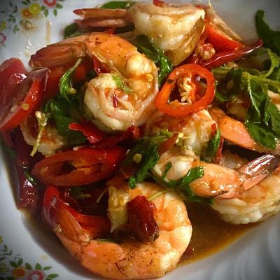 ผัดกระเพรากุ้ง [ Stir-fried Prawn with Thai Basil]