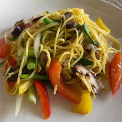 ผัดหมี่เหลืองไก่ [ Stir-fried egg noodle with chicken/with out]